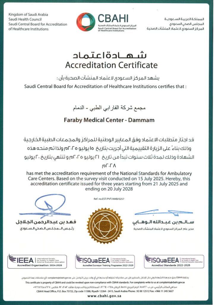 نود مشاركتكم بالخبر السعيد والانجاز الرائع لفريقنا بحصولنا على الاعتماد لشهادة سباهي لأول مركزين تخصصيين في المنطقة الشرقية ولقد كانت نتيجة الاعتماد ٩٤.١ و٩٥.٤.