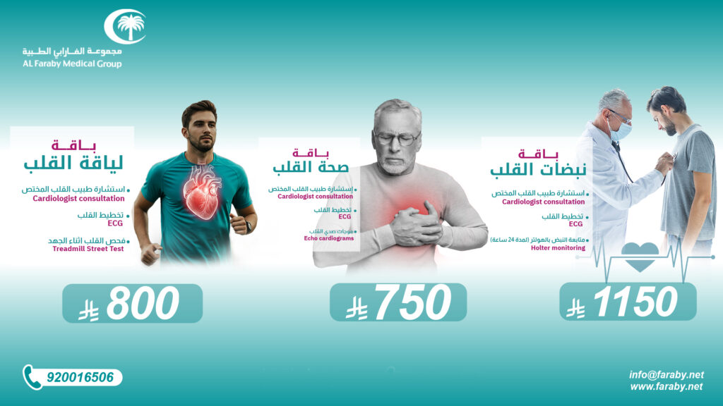 (استشارة طبيب القلب , تخطيط القلب ,موجات صدى القلب, متابعة نبضات القلب بالهولتر, فحص الفلب بالجهد)